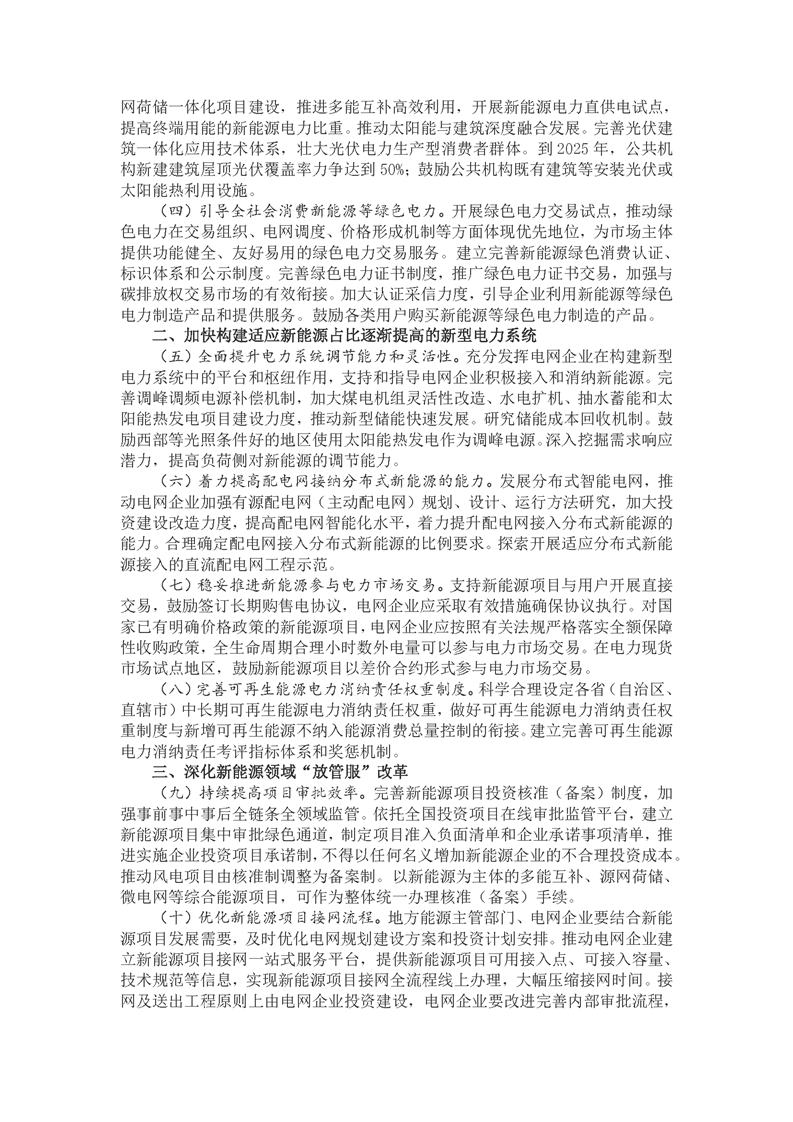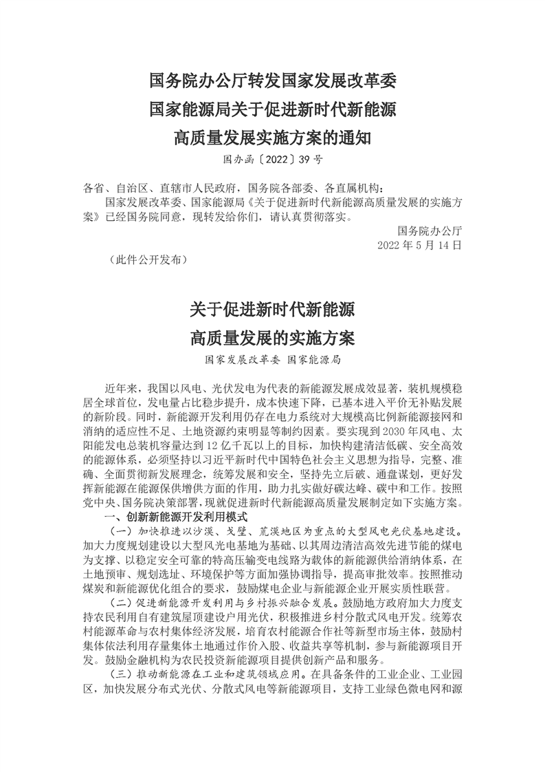 国务院办公厅转发国家发展改革委国家能源局关于促进新时代新能源高质量发展实施方案的通知