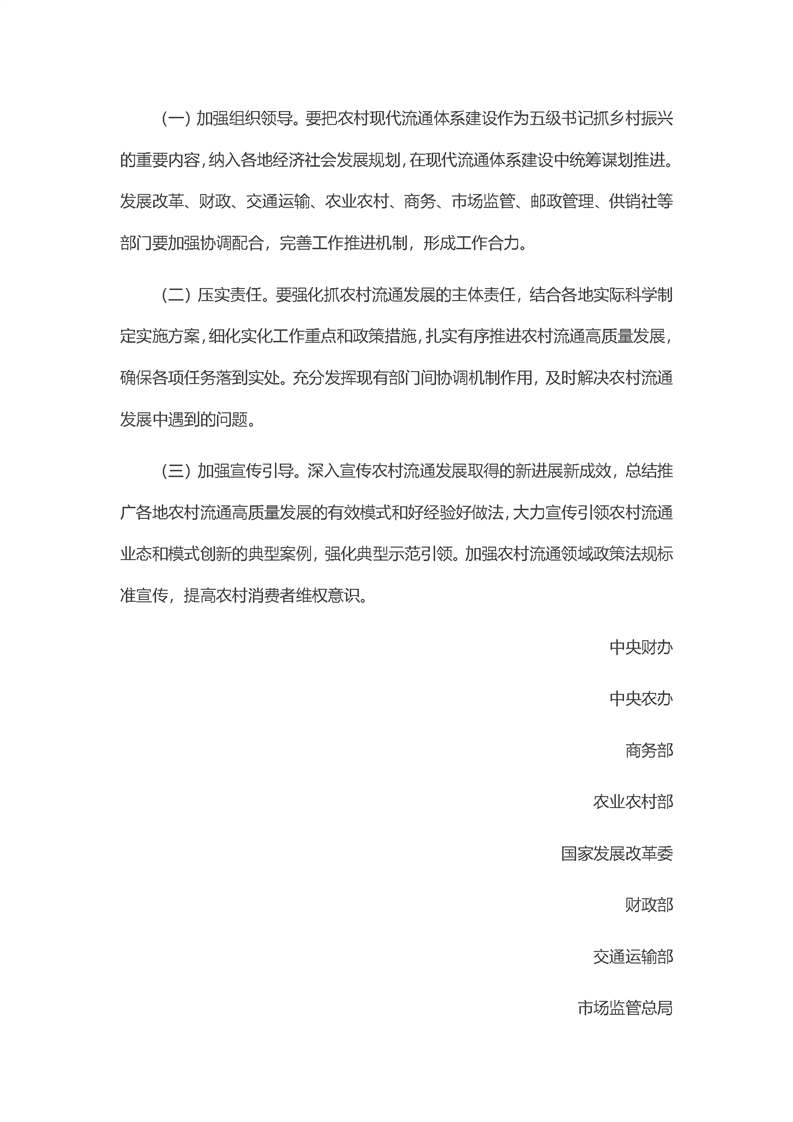 中央财办等部门关于推动农村流通高质量发展的指导意见